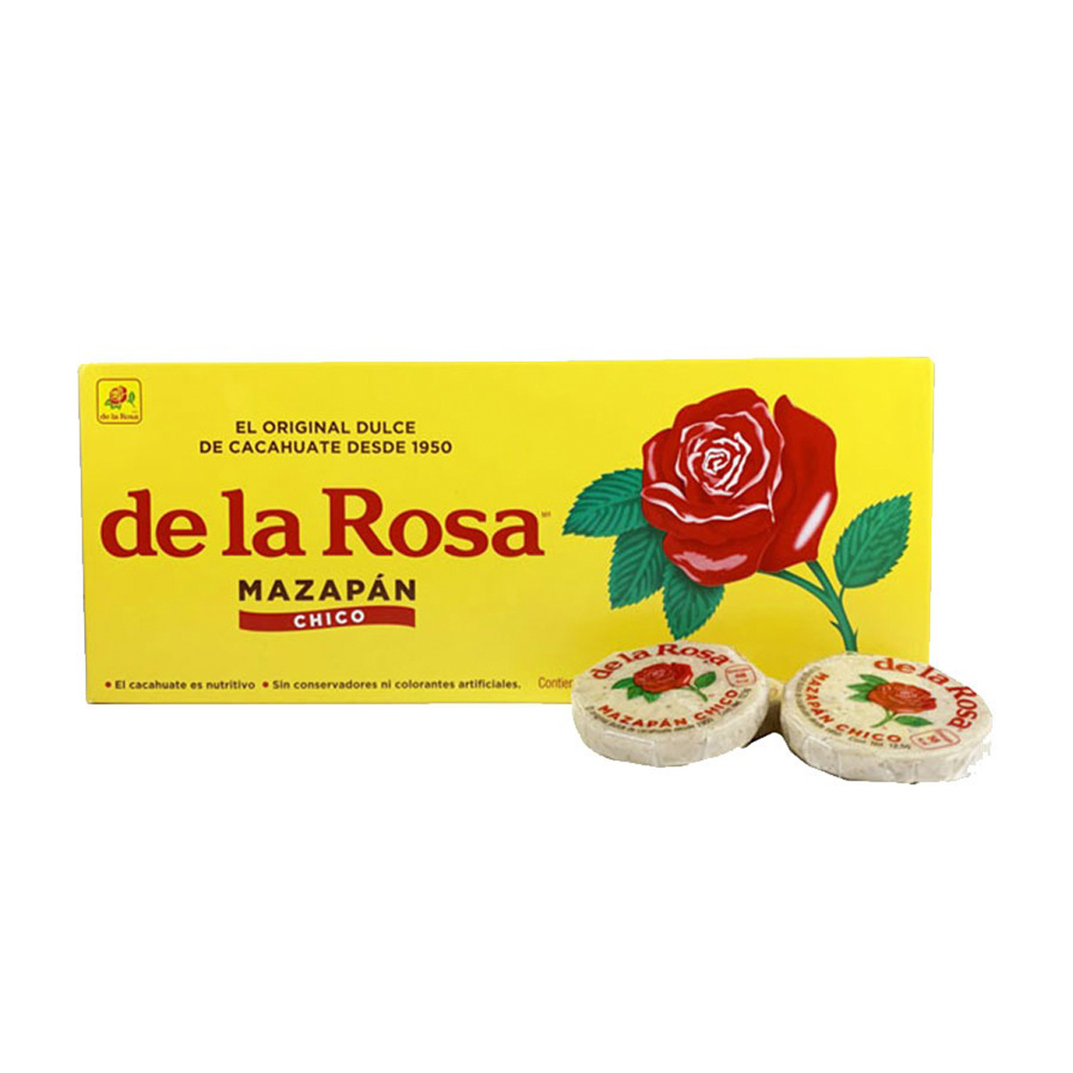 El mazapán es uno de los dulces favoritos de los mexicanos, elaborado con cacahuates tostados. Caja con 60 unidades de 12,5 g.