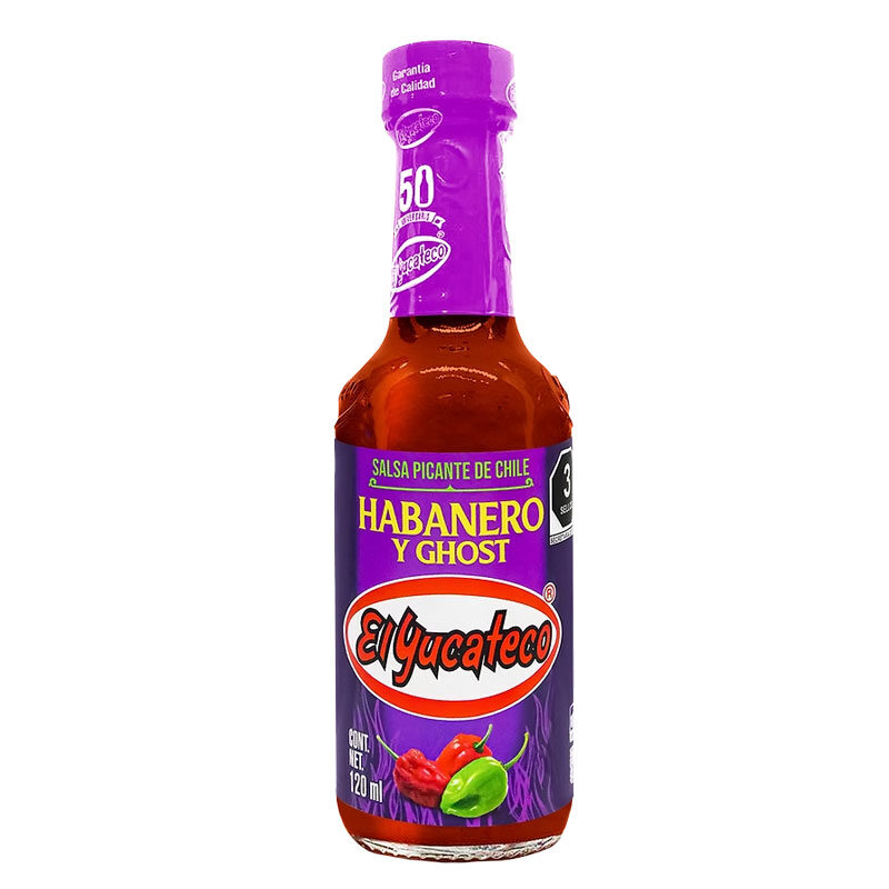 ¡Picante Extremo! Botella de 120 ml de salsa extra picante de chile habanero con Naga (Chile Fantasma), El Yucateco.